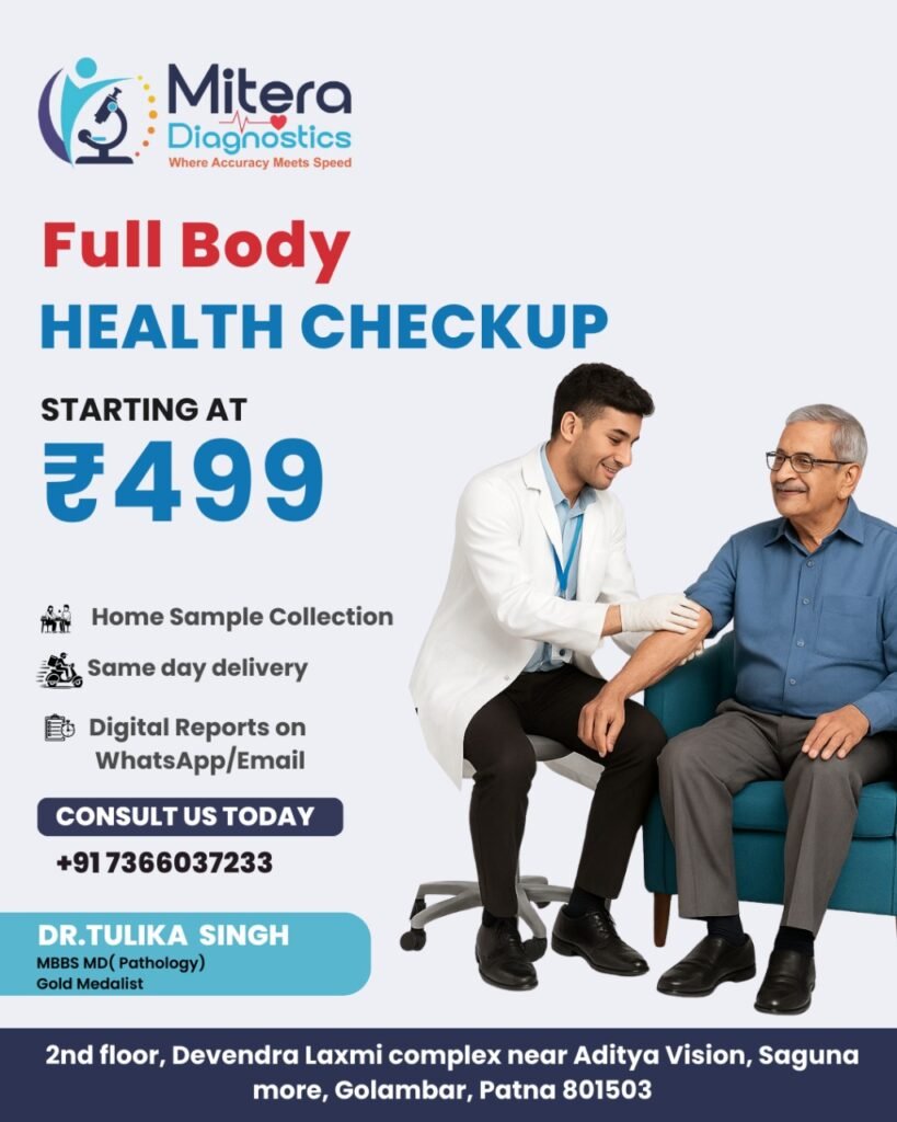Ensure your well-being with our affordable health checkup packages designed to detect problems early and keep you healthy. Get accurate reports, expert guidance, and same-day results at Mitera Diagnostics, Patna.